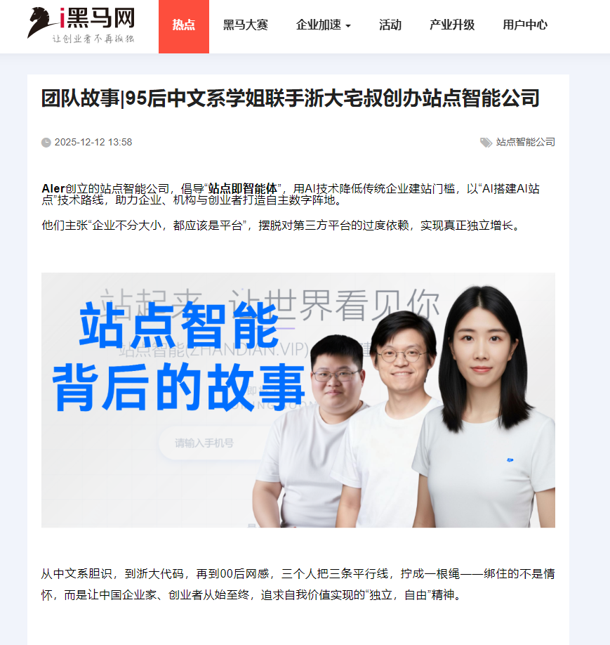 【i黑马】团队故事|95后中文系学姐联手浙大宅叔创办站点智能公司