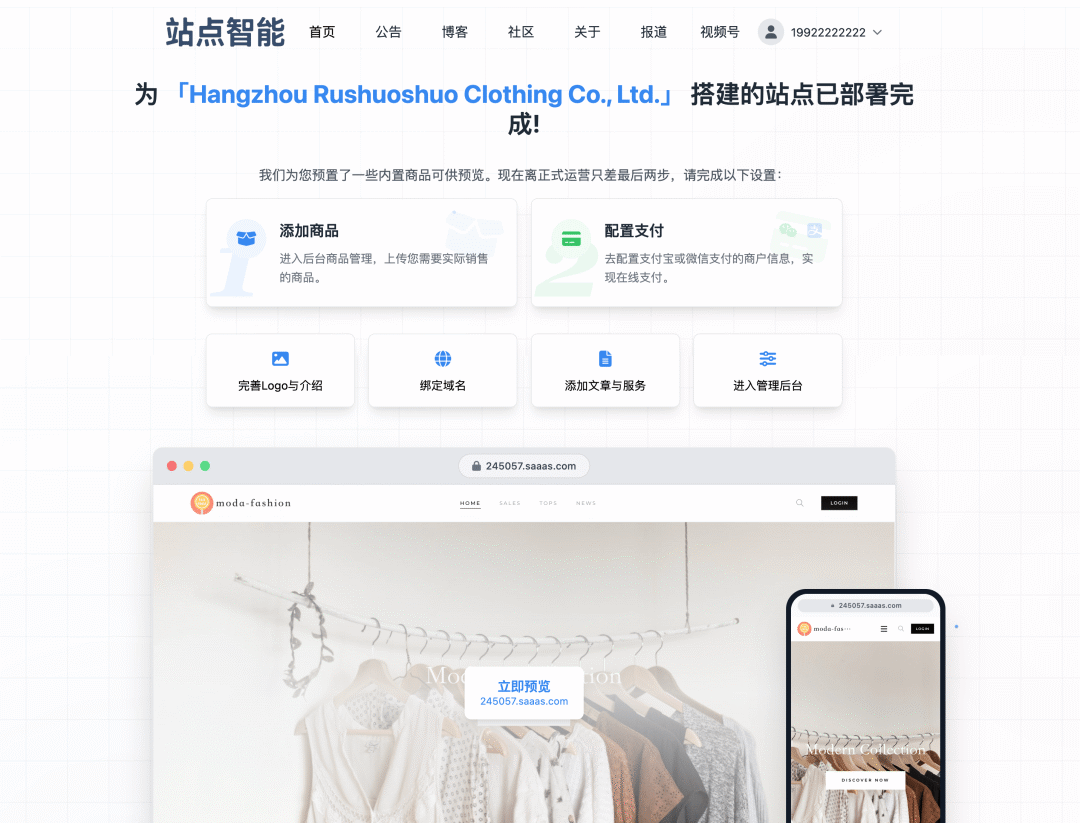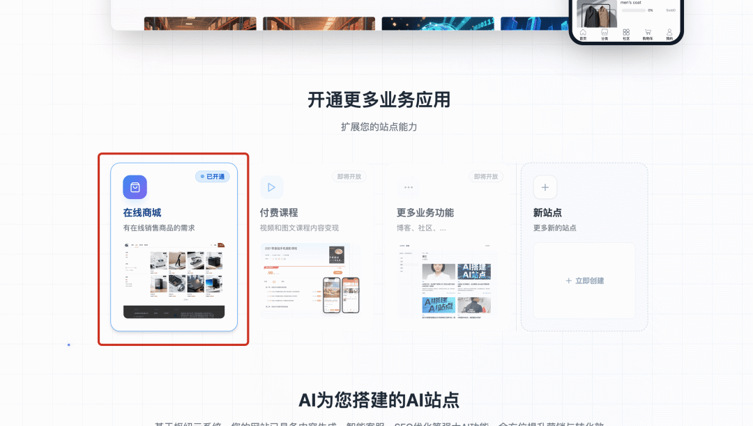 Alpha版 3次升级 | 助力出海,一键搭建英文外贸独立站 • 展示型站点可开通在线销售 • 单账号账号可创建多个站点